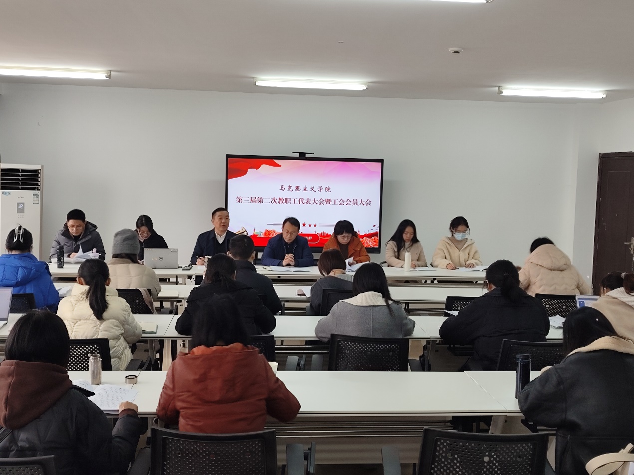 (通讯员熊成)2024年12月27日,武汉交通职业学院马克思主义学院第三届第二次教职工代表大会暨工会会员大会在明德楼616顺利召开。此次大会旨在推进学院依法治理和民主管理进程,助力学院高质量发展。大会由学院分工会主席蔡中华主持,院长潘峻岭、副院长左婷、各代表团团长及全体教职工参加。