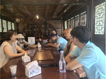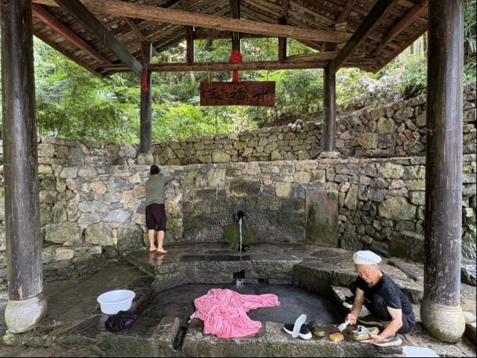 实践团首先聚焦古寨“寿”字布局的空间智慧。在两千余米长的古巷道中,成员们看到苗族蜡染匠人曾晾晒布匹的石板台,听闻侗族花灯戏班沿巷巡演的往事,还在天福古井边听汉族老人讲述“六口祈福”民俗中各族群众共祝安康的传统。