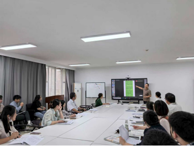 随后,蔡院长就课程建设的多项成果作了专题阐述。他指出,本学期课程组成功推出了活页式教材,并基本建成“学习通”智慧课程1.0版本,配套教辅材料也已全部制作完成。蔡院长充分肯定了课程团队在前一阶段的辛勤努力和显著成效,并对教材编写理念、线上课程架构与模块设计思路作了进一步说明。他鼓励全体教师积极参与“共建、共创、共享”,不断丰富智慧课程数字资源,拓展AI智能教学工具的应用范围,同时踊跃申报科研课题、参加教学竞赛及指导大学生职业规划大赛,实现教学相长、多元发展。