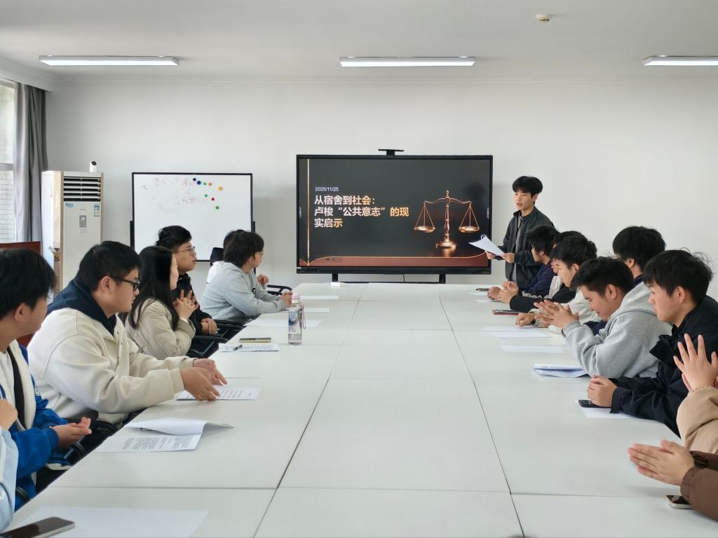 2025年11月25日下午2时,马克思列宁主义学习研究会(简称“马列学会”)在明德楼616室开展“导师有约,共读经典”活动。本次活动以启蒙思想家卢梭的《社会契约论》为研读篇目,围绕“公共意志”的现实意义展开深入探讨,吸引了来自不同专业的二十余名学生参与,马列学会指导老师李沐昱参加此次读书会。